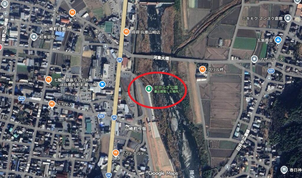 場所:せせらぎ公園 〒671-2573 兵庫県宍粟市山崎町今宿96